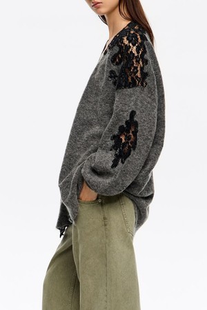 [25FW] 다크 그레이 레이스 롱 가디건 B256AWG005GRB