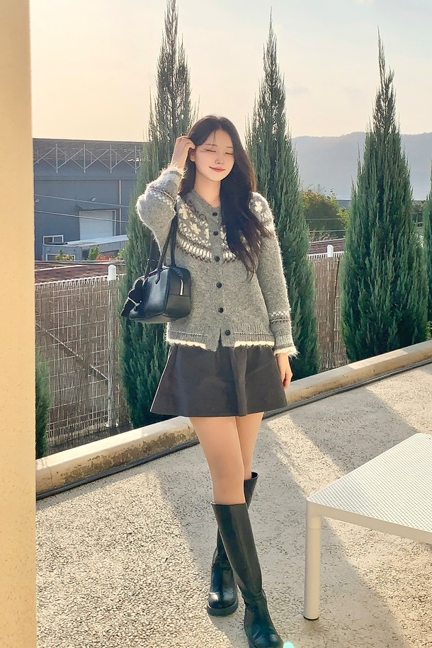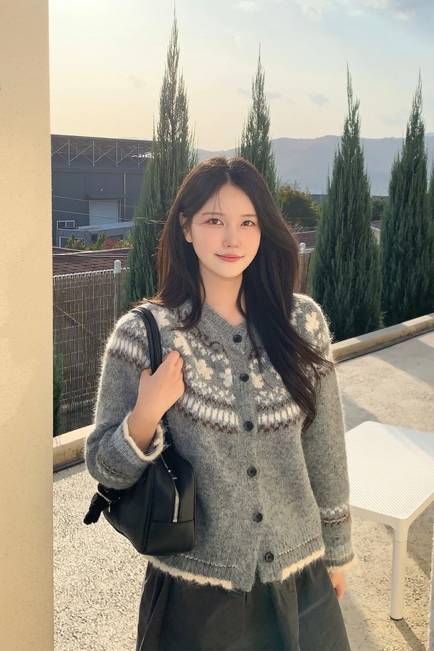 여성 리본 보카시 버튼 카디건[GREY](UBBGDA1_35)