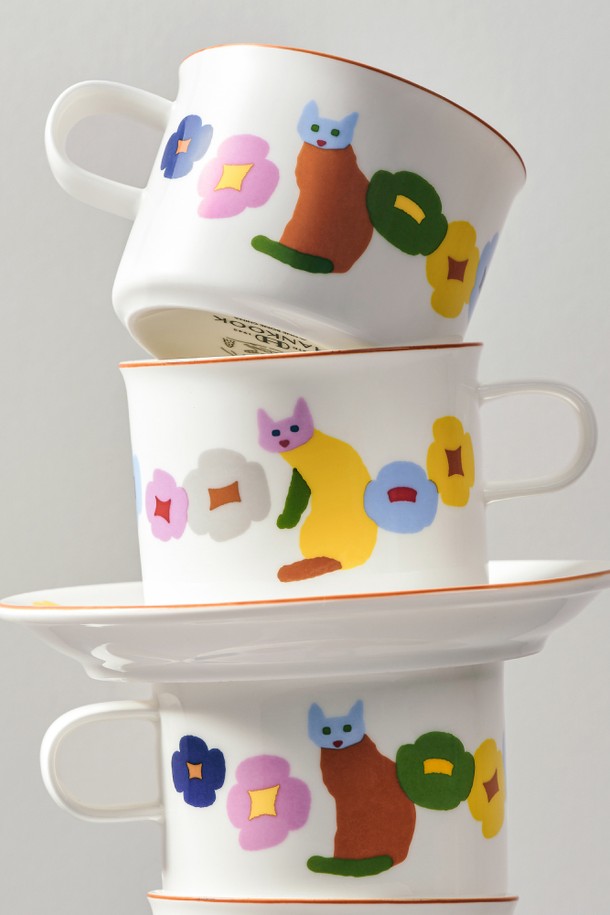 [한국도자기 X 웜그레이테일] 캣츠앤플라워스 머그 1p