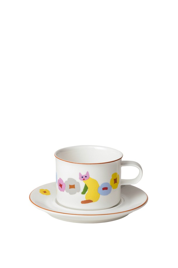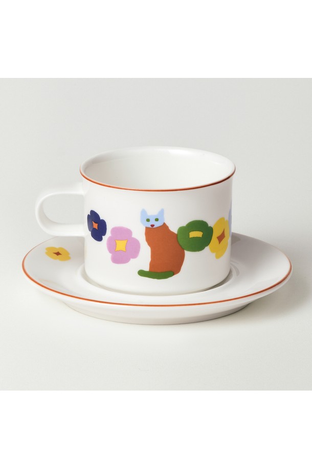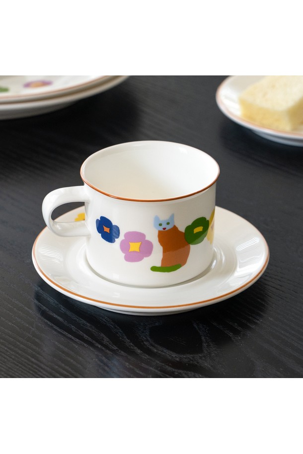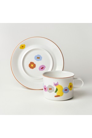 [한국도자기 X 웜그레이테일] 캣츠앤플라워스 머그 & 소서 2p