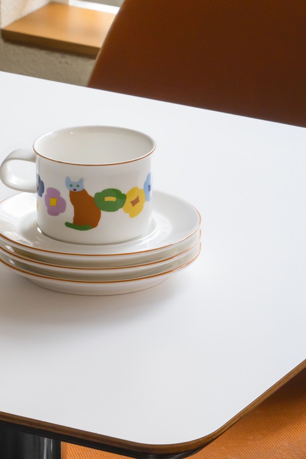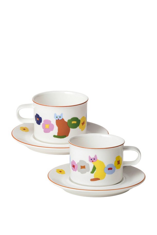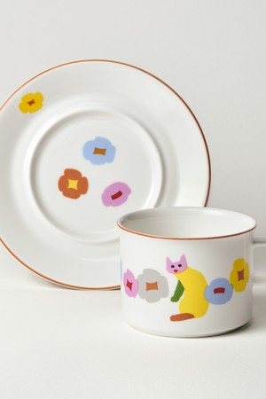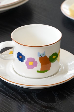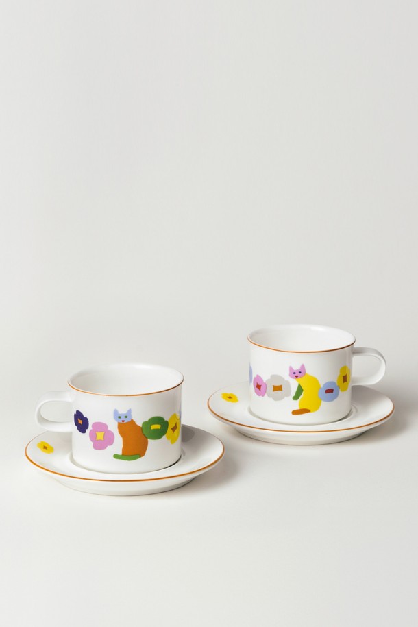 [한국도자기 X 웜그레이테일] 캣츠앤플라워스 머그 & 소서 2인 세트 4p
