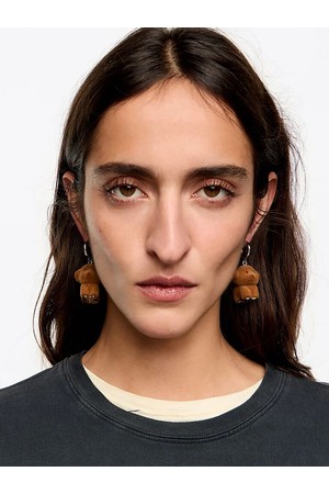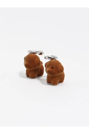 [25FW] 브라운 플록 강아지 후프 이어링 B256AIW011BRF