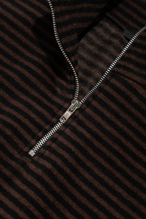 STRIPE HALF ZIP-UP FLEECE (BROWN)