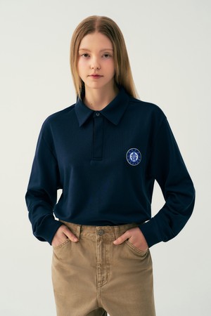 남녀공용 프레피 씰로고 긴팔 폴로셔츠[NAVY](UB9LT35_45)