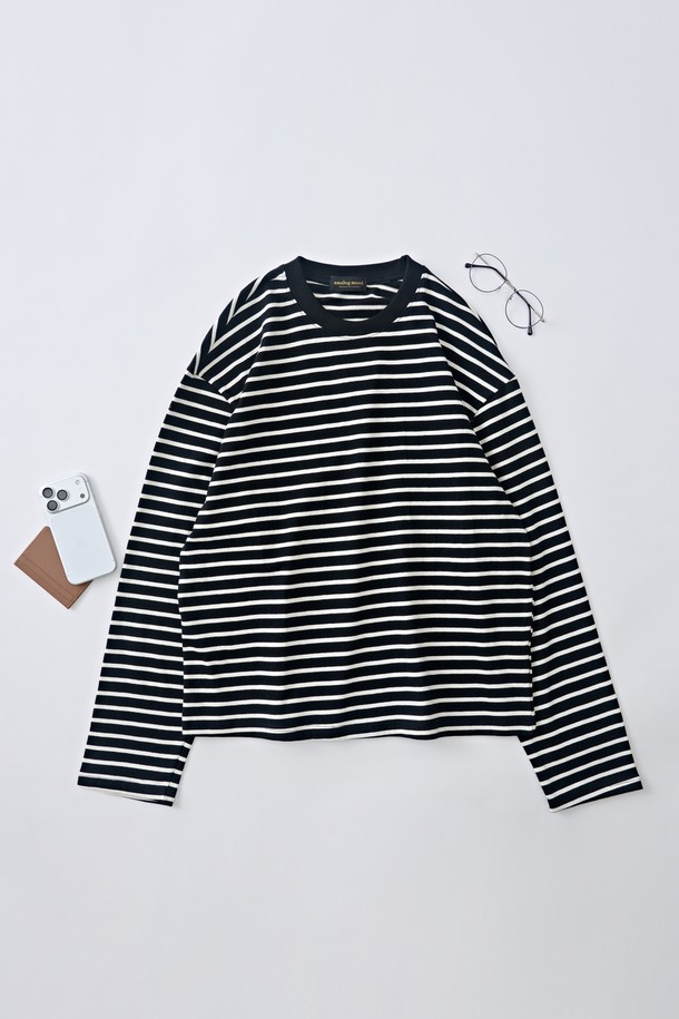 스트라이프 클래식 단가라 긴팔티셔츠 (블랙)
