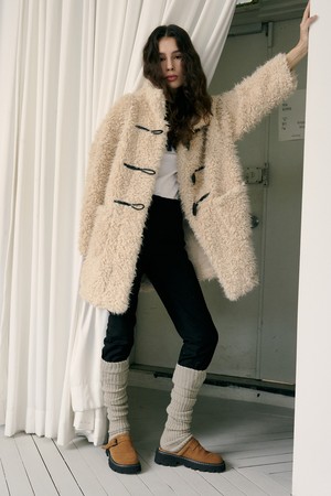 Shearling Duffle Half Coat Beige