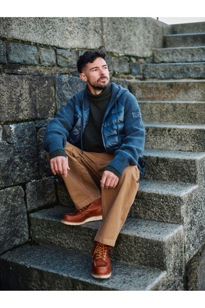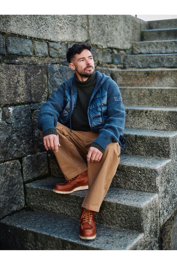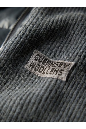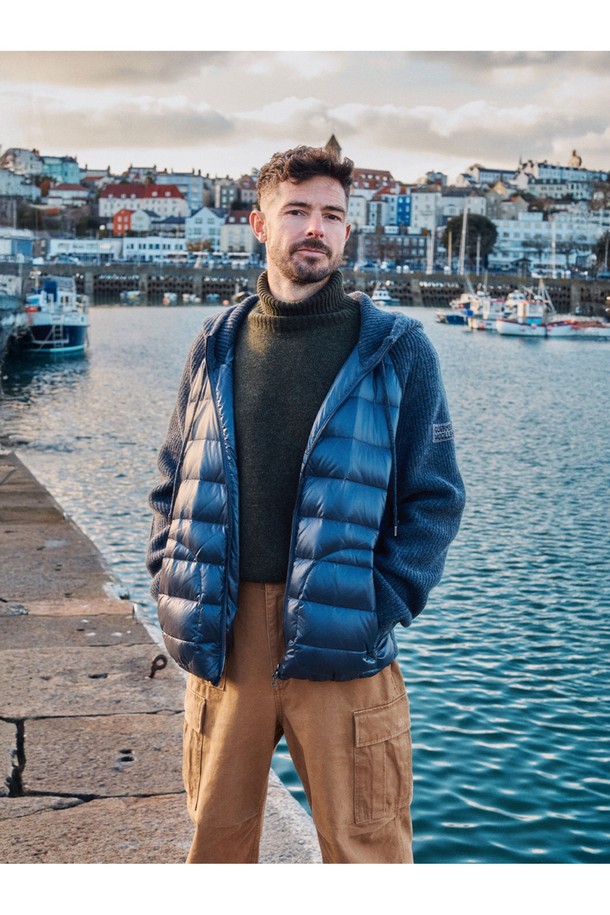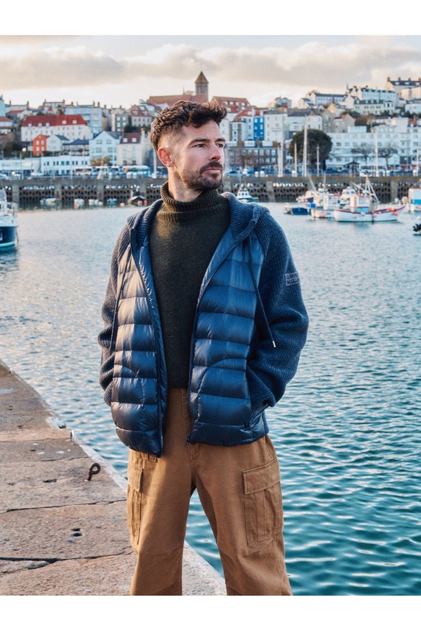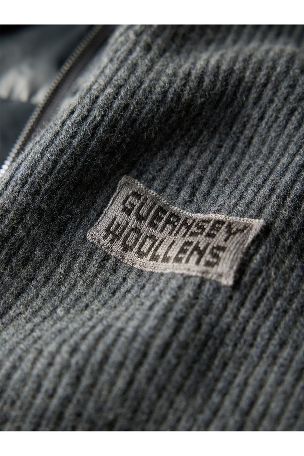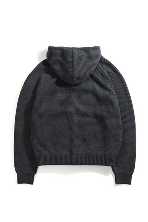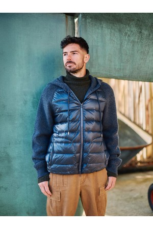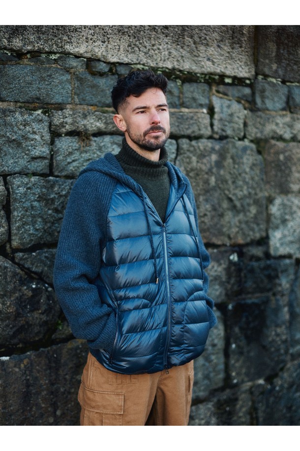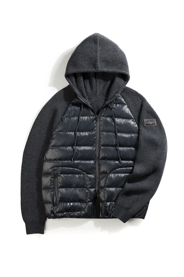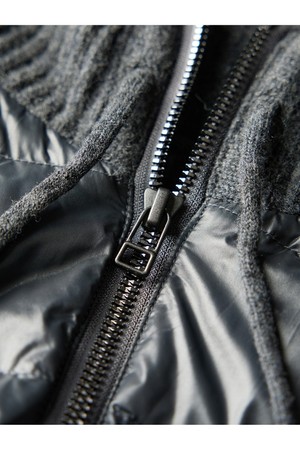 구스 다운 하이브리드 후드 집업 스웨터 - 그레이