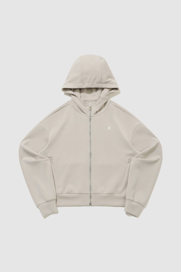 여성 더블텐션2.0 루즈핏 세미크롭 후드 집업 - 베이지 QR122OFT11