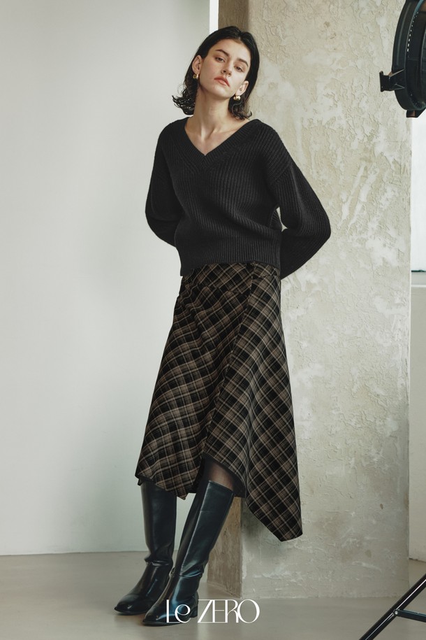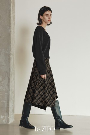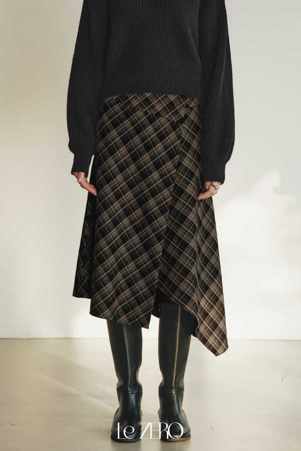 르제로 버튼 체크 랩 스커트 / 브라운
