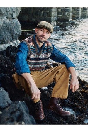 세인트피터 페어아일 브이넥 베스트 - 브라운