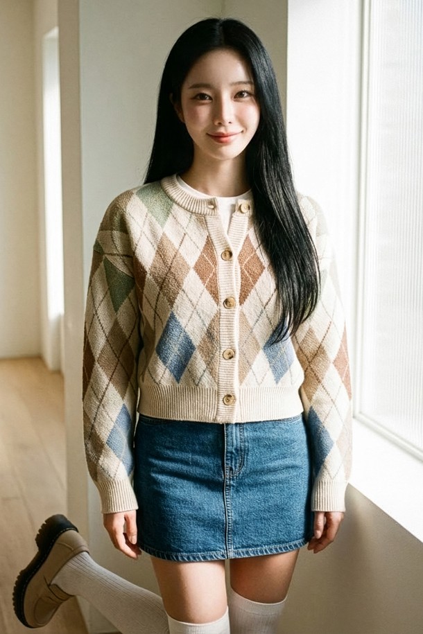 여성 클래식 아가일 패턴물 카디건(HC1GDA1)