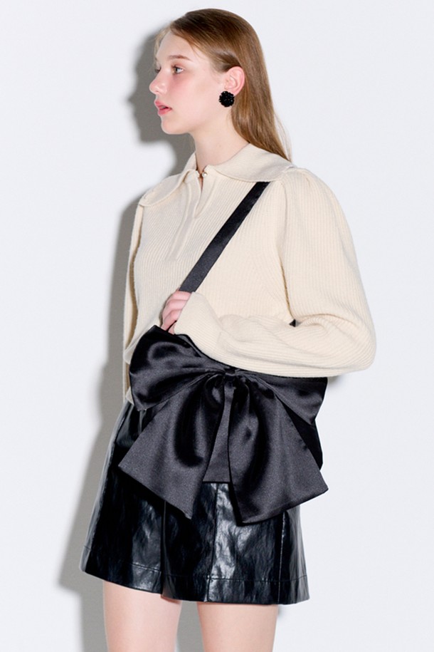 [리퍼브] Big Ribbon Satin Bag Black