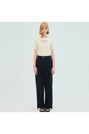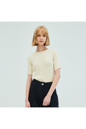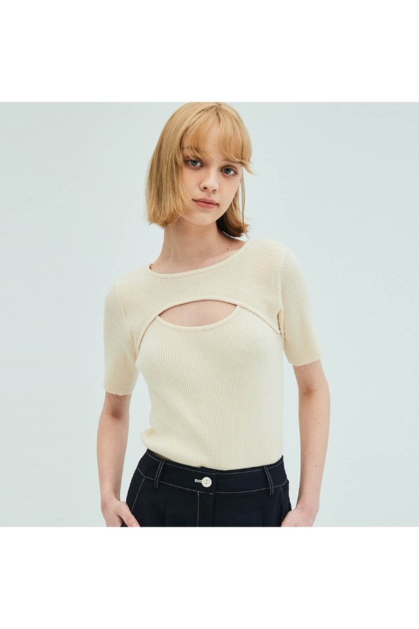 [리퍼브] Cut out Short Sleeve Slim Knit_Cream