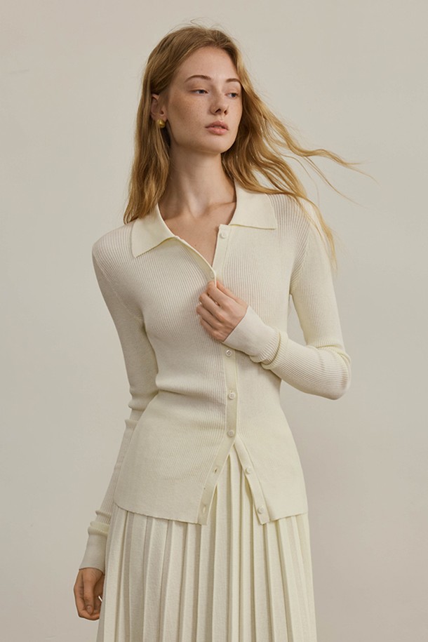 Collar neck knit cardigan