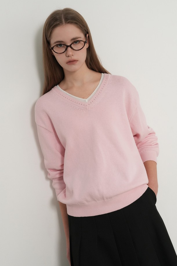 [26SS] WOMAN 코튼 레이어드 브이넥 니트 풀오버 [3COL] / GF1LKP506