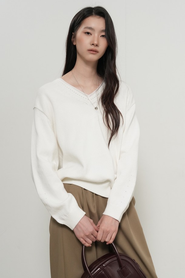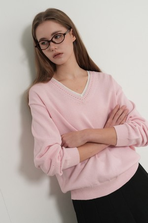 [26SS] WOMAN 코튼 레이어드 브이넥 니트 풀오버 [3COL] / GF1LKP506