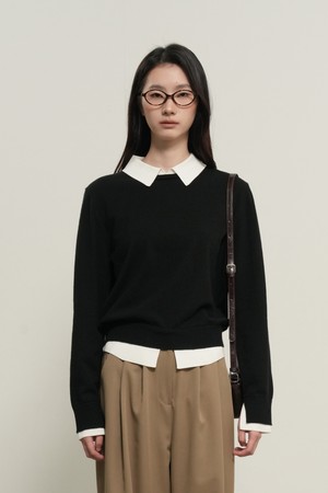 WOMAN 릴렉스드 카라 레이어드 풀오버 [3COL] / GF1LKP502