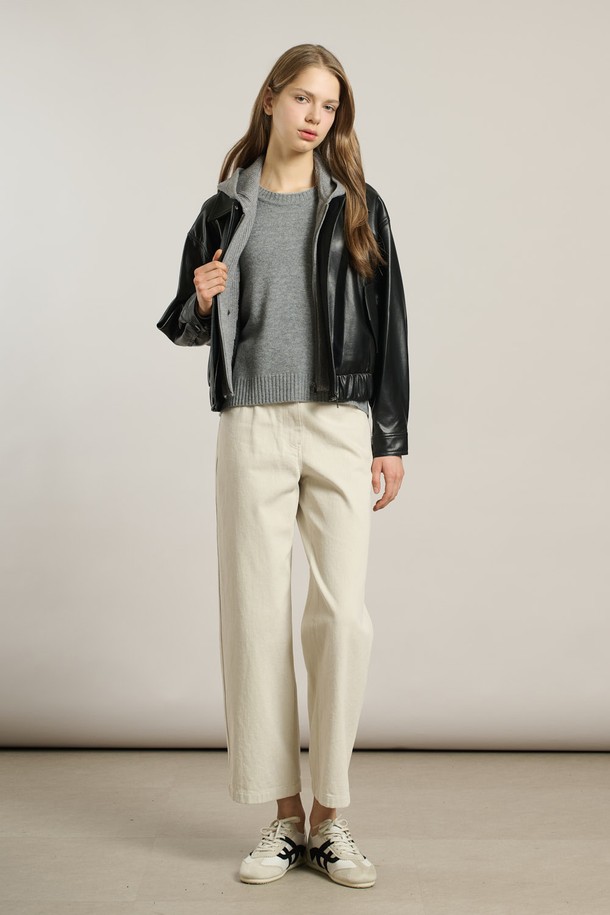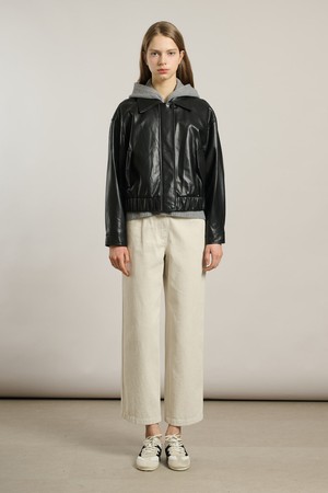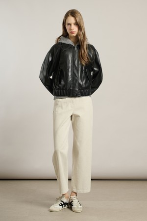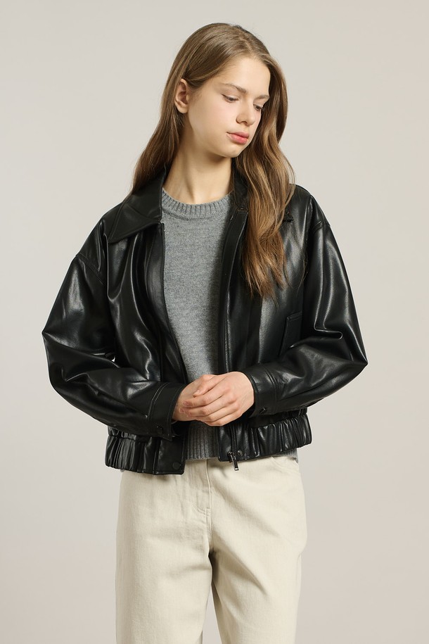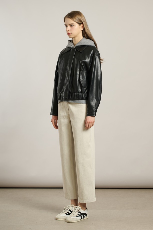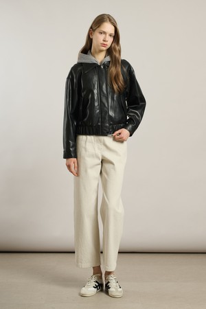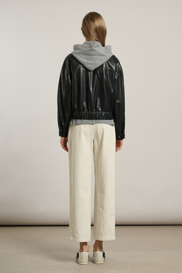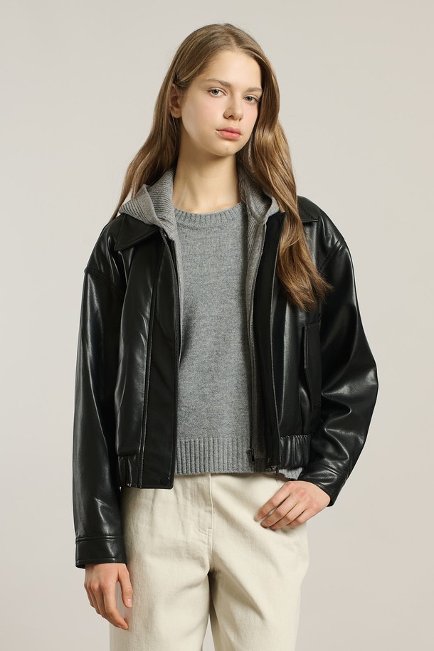 [26SP] 니트후드 인조가죽 자켓 - BLACK A6S1F80599