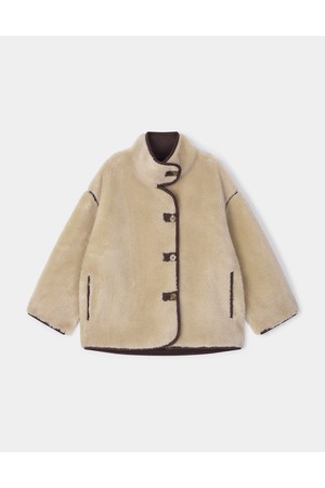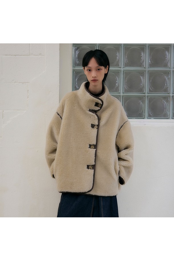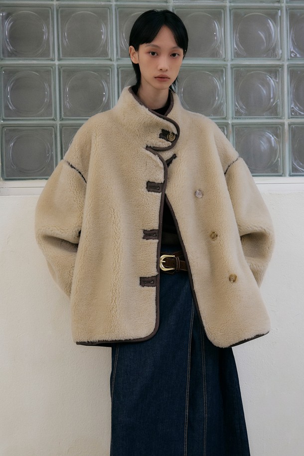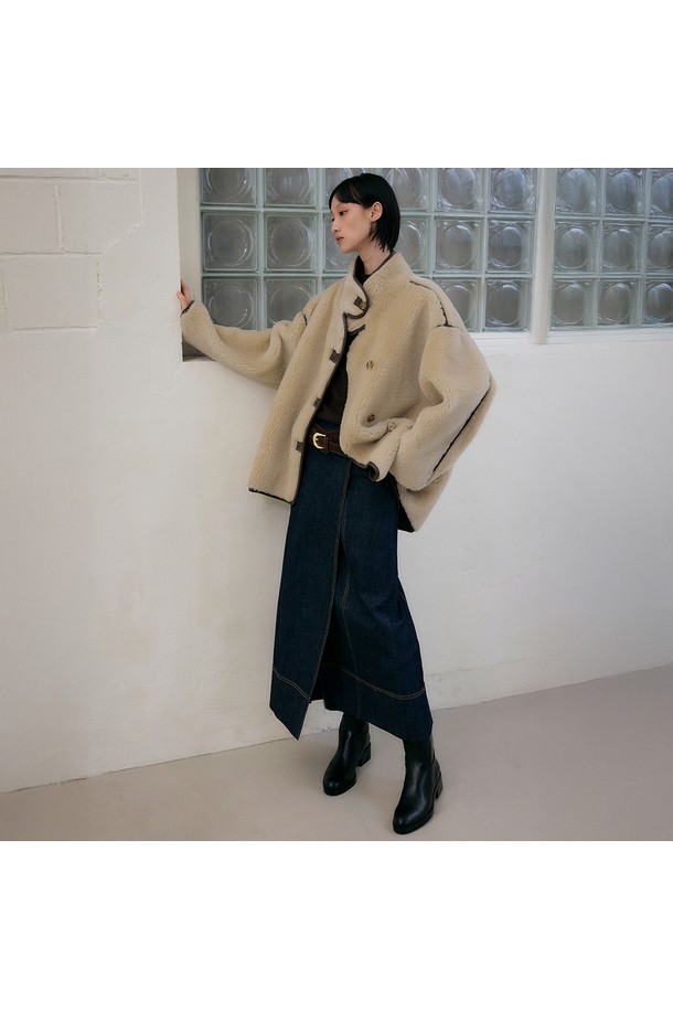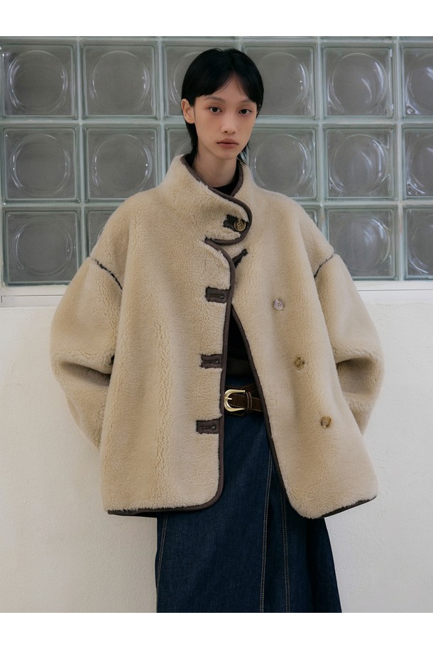 리얼 양털 오버핏 라인 무스탕 자켓 [베이지]