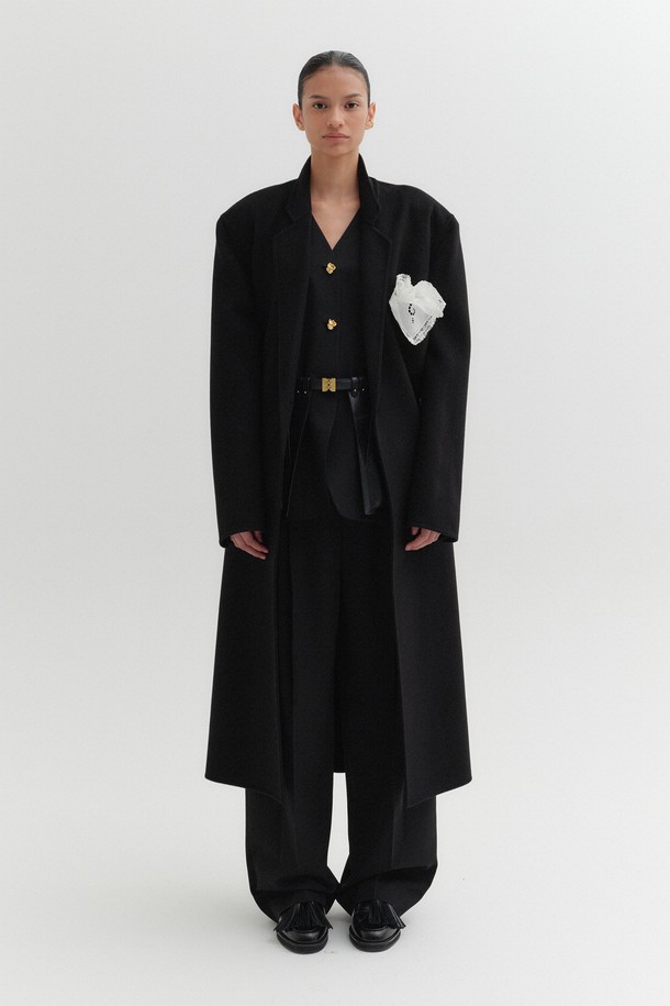 핸드메이드 더블 브레스티드 테일러드 코트 - 블랙