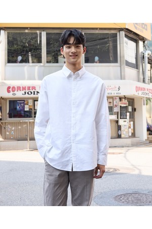 [코디갤러리 by STCO]피치가공 웜터치 옥스포드 셔츠_화이트 (오버핏)_CDSWZ08NSW