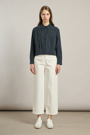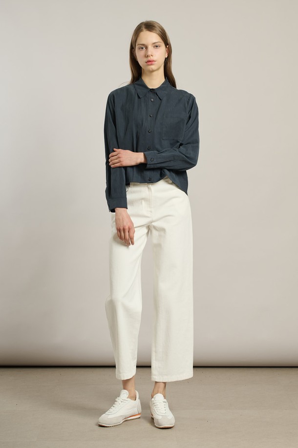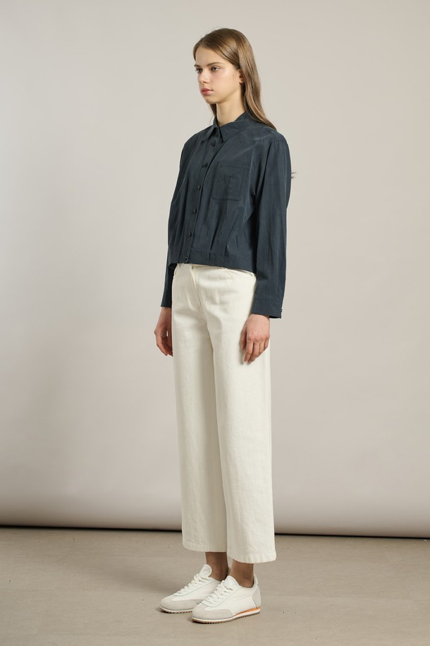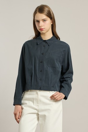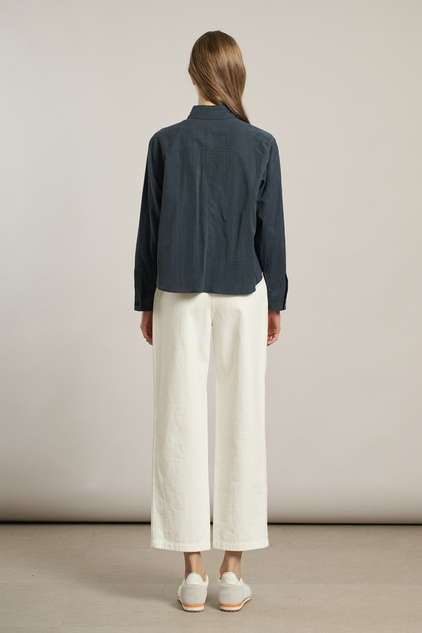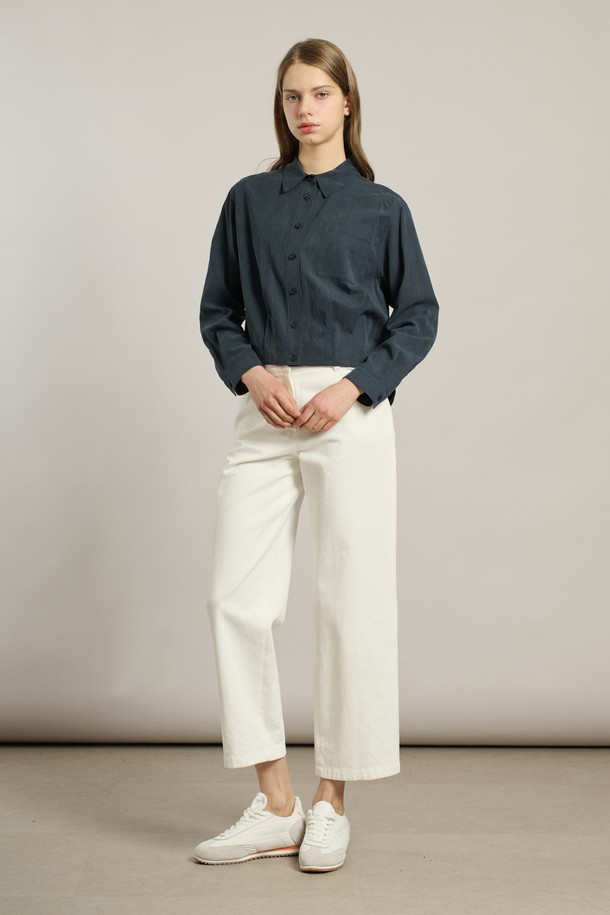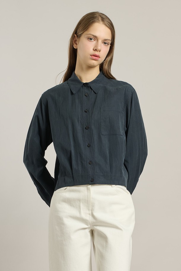 [26SP] 밑단 턱 볼륨 블라우스 - NAVY A6S2B42055