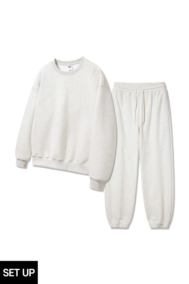 [SET][기모] 앨빈클로 무지 오버핏 맨투맨 조거/세미와이드 팬츠 셋업