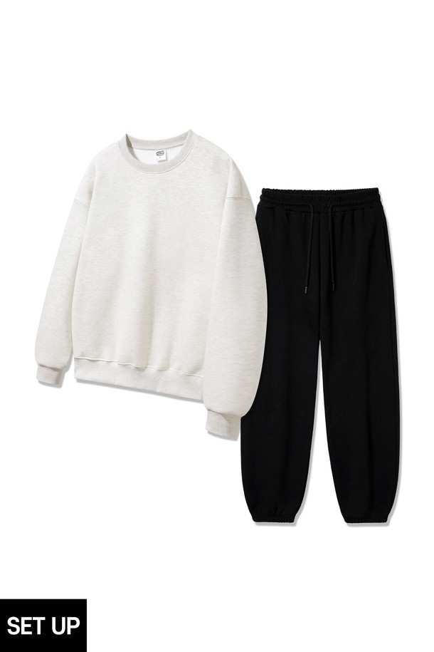 [SET][기모] 앨빈클로 무지 오버핏 맨투맨 조거/세미와이드 팬츠 셋업