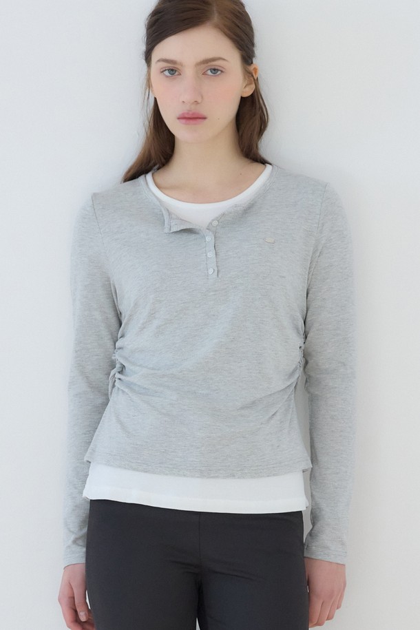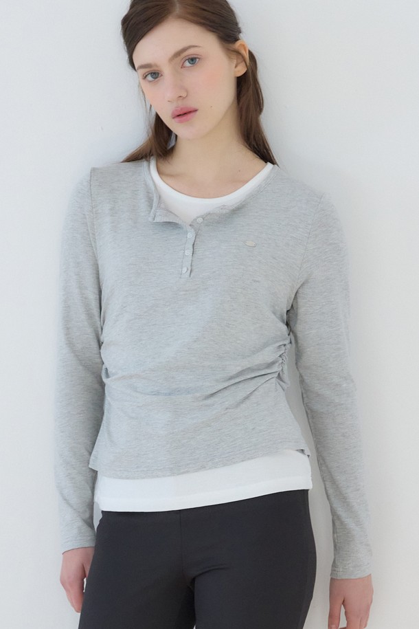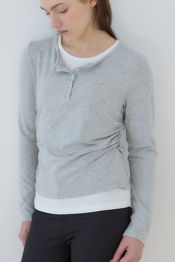 소프트 레이어드 버튼 넥 티셔츠 - Melange grey