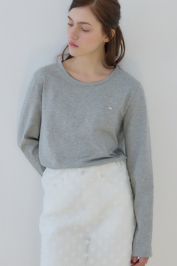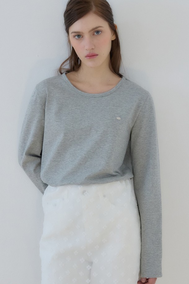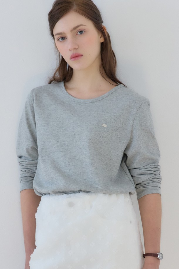로고 실키 라운드 넥 슬리브 티셔츠 - Melange grey