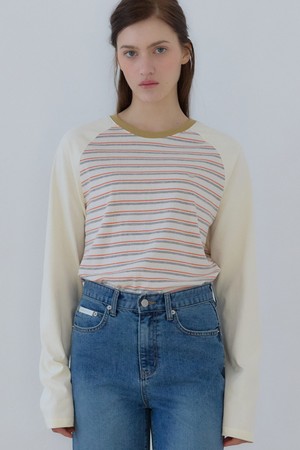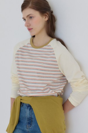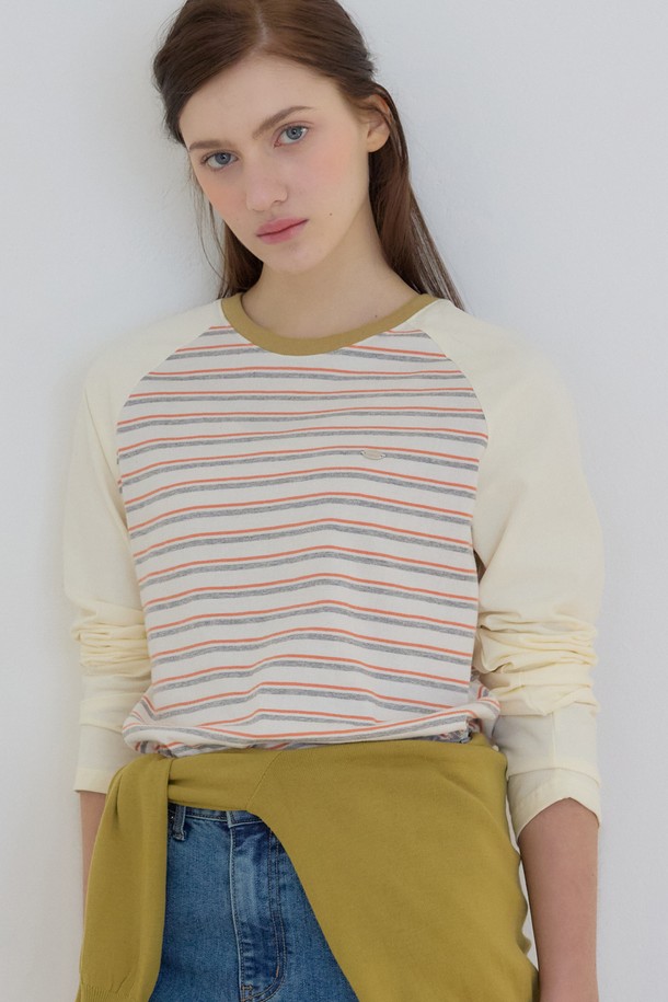 스트라이프 투톤 래글런 티셔츠 - Yellow
