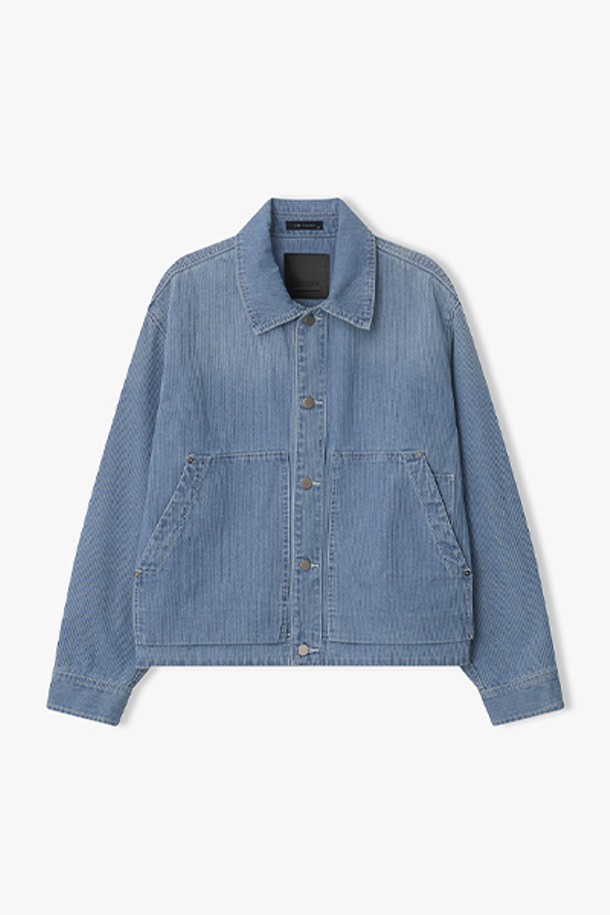 [26SS] LMS32770 라이트블루 스트라이프 워시드 데님 자켓