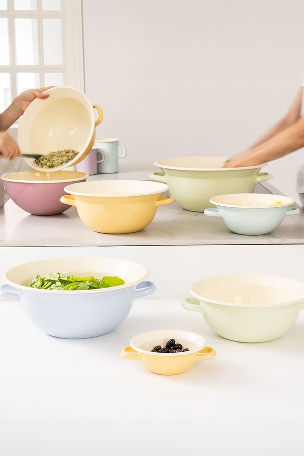 리스 번트 법랑 양수 믹싱볼 14cm 옐로우