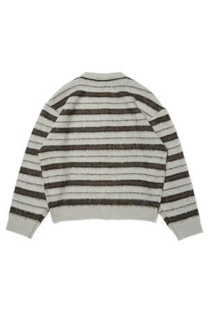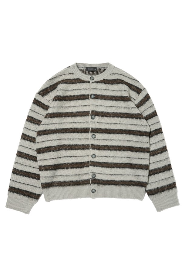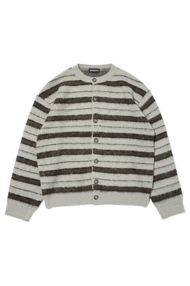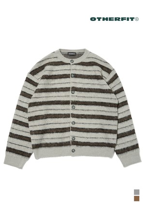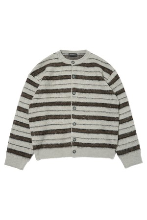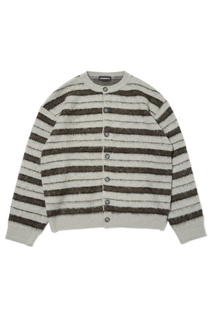 스트라이프 울 브러쉬 니트 가디건 (차콜)