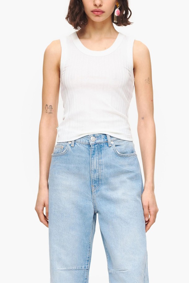 [23SS] 빔바이롤라 화이트 스트라이프 텍스처 슬리브리스 탑 B235JWT017WHB