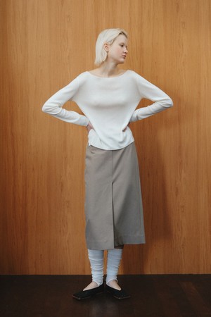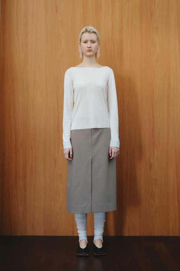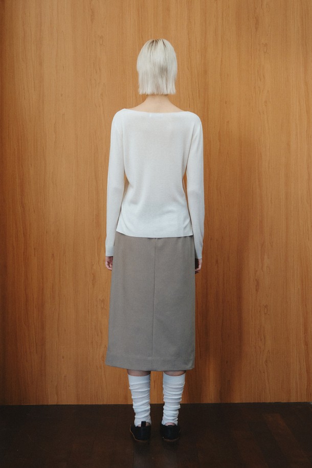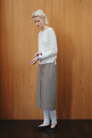 WOOL BLEND SLIT SKIRT_KHAKI BEIGE