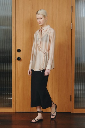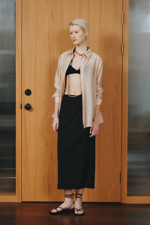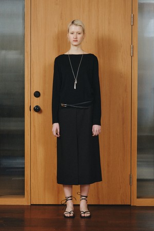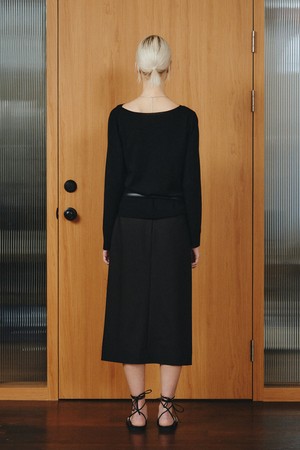 WOOL BLEND SLIT SKIRT_BLACK