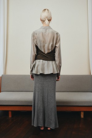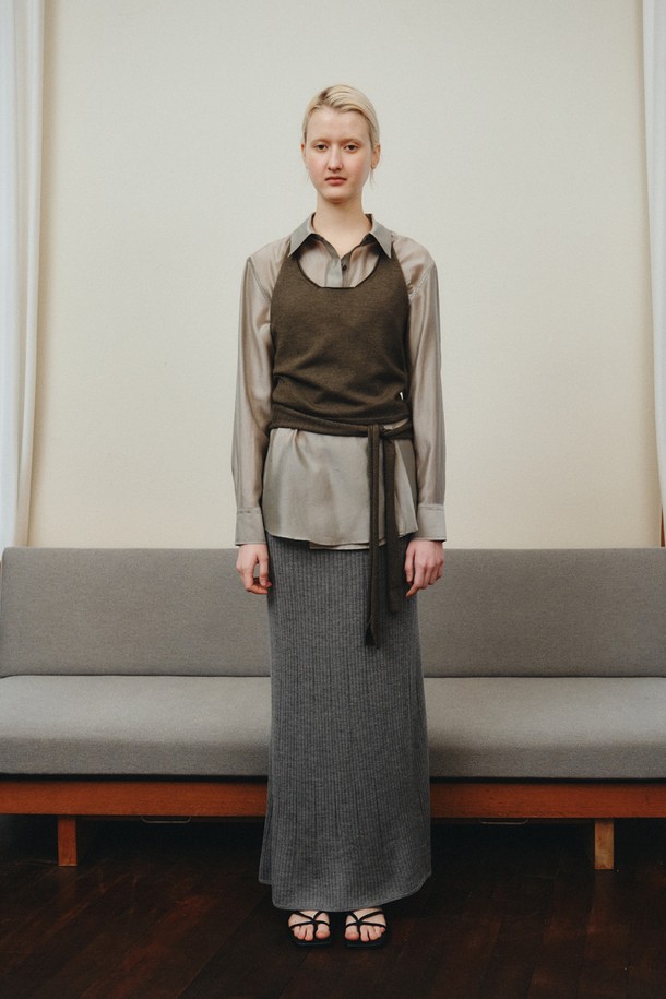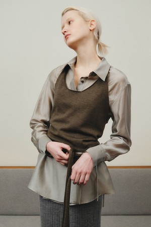 WOOL HALTER WRAP VEST_KHAKI