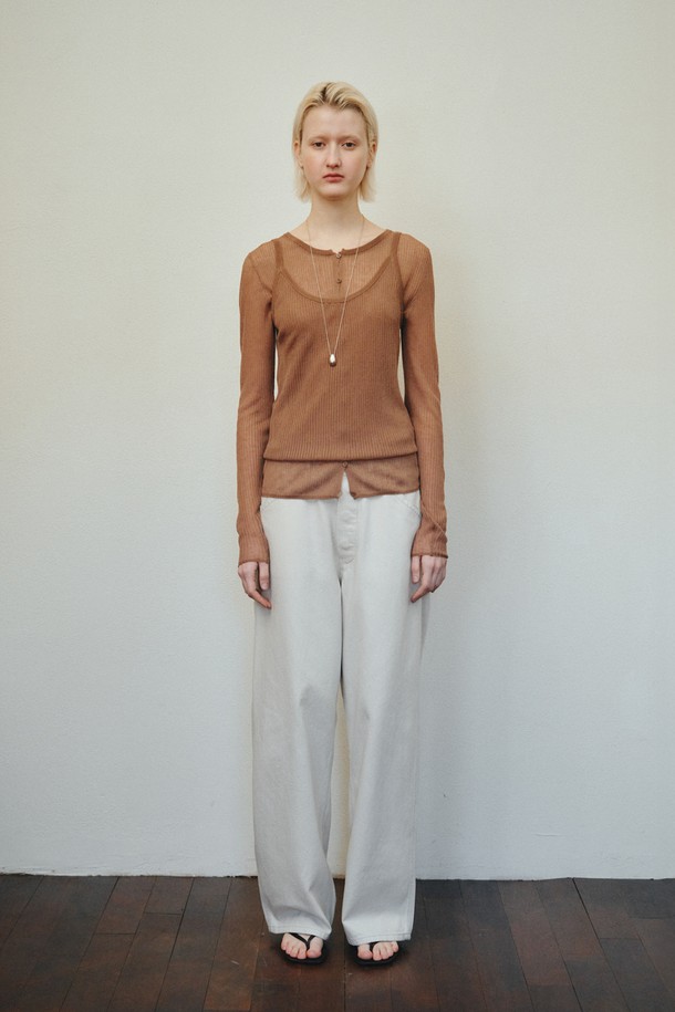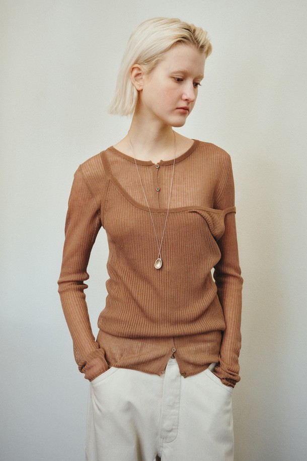 RIBBED LAYERED CARDIGAN SET_BROWN