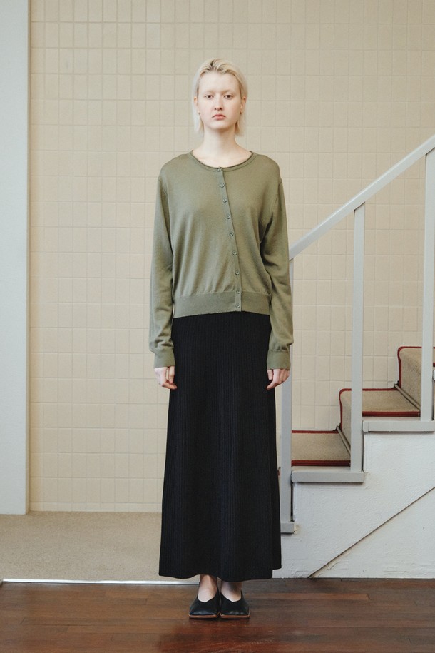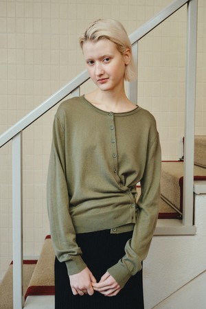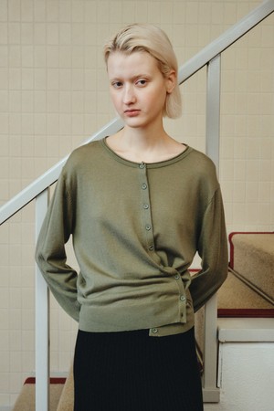 WOOL BLEND DIAGONAL CARDIGAN_KHAKI