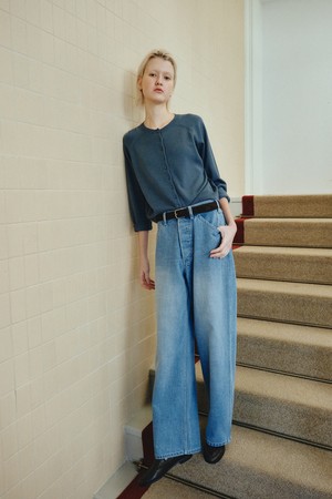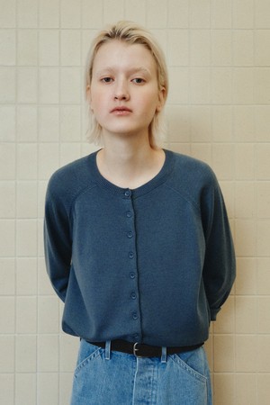 WOOL ROUND CARDIGAN_SMOKE BLUE