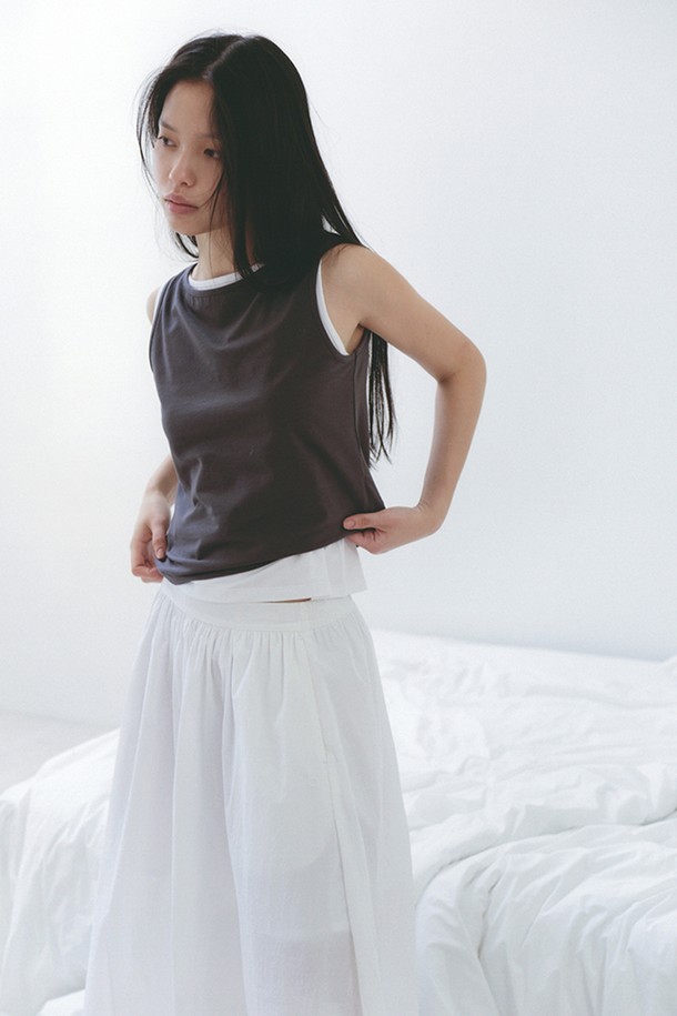 W 모달 보트넥 슬리브리스 탑 Charcoal