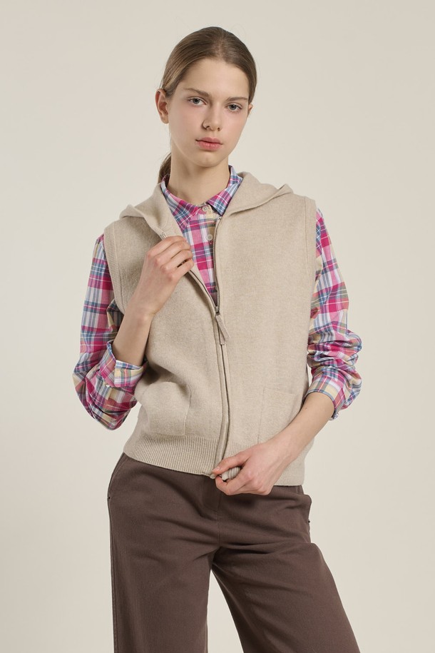[26SP] 울 블랜드 집업 후드 베스트 - LIGHT BEIGE B6A1K50171