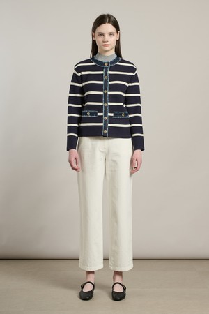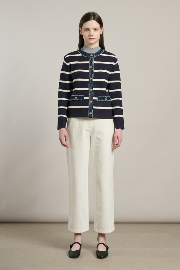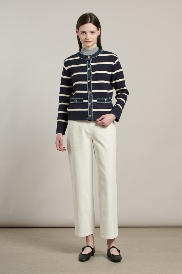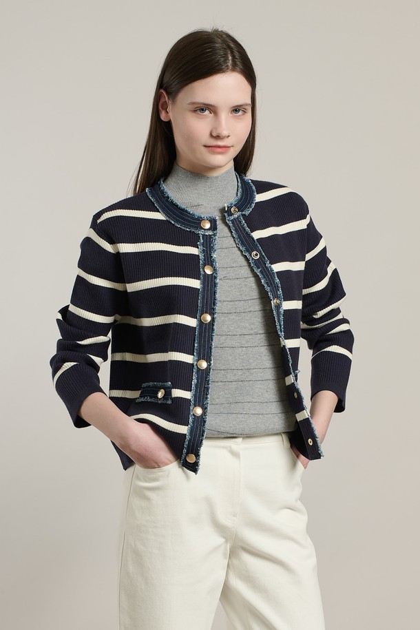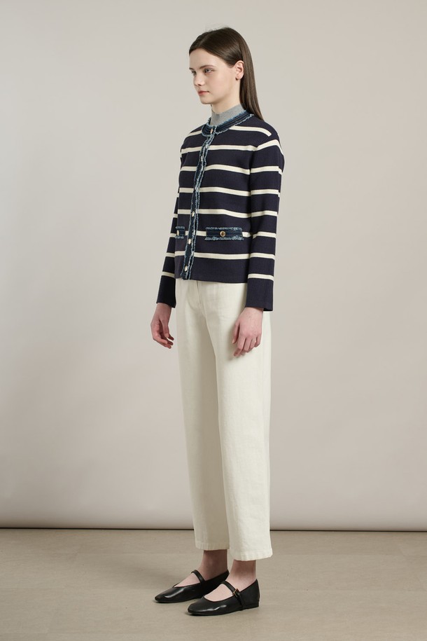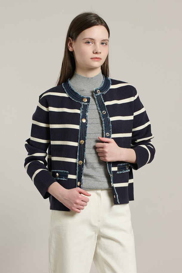 [26SP] 데님패치 니트 가디건 - NAVY A6S2K11255