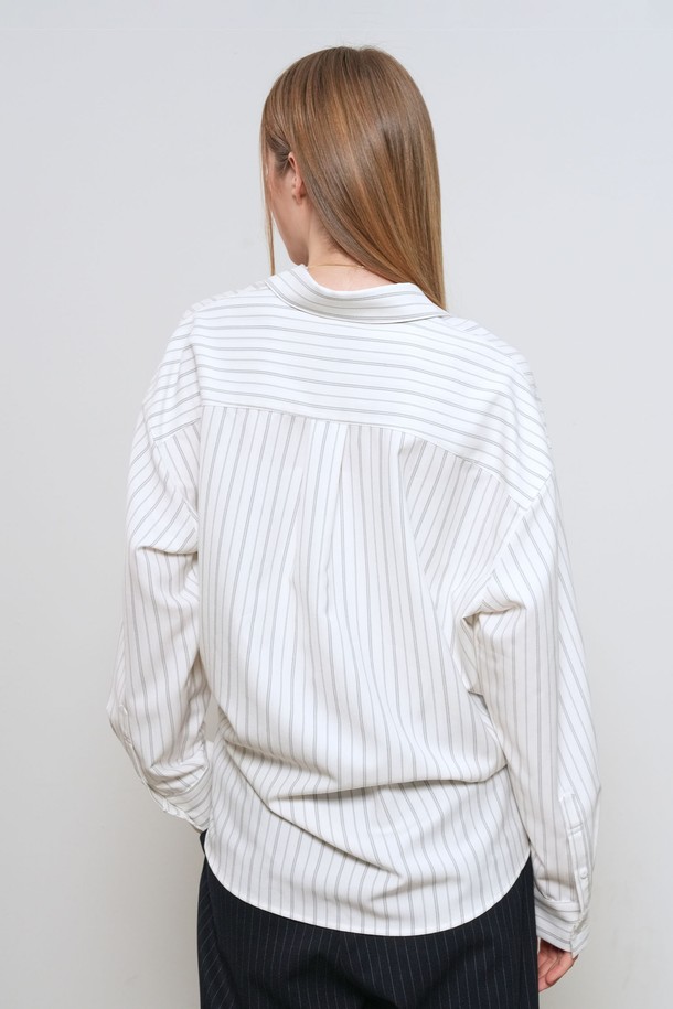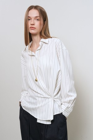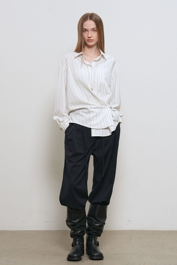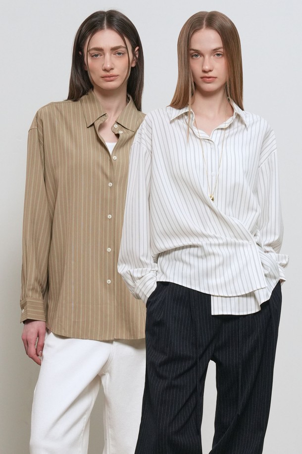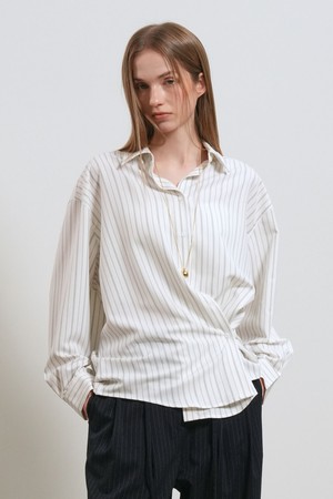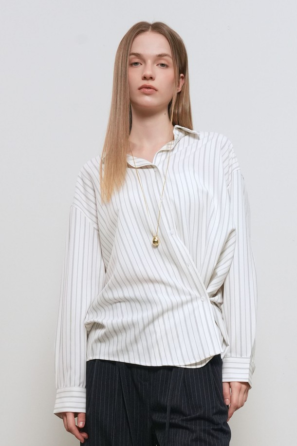 [26SS] WOMAN 루즈핏 버튼 랩 스트라이프 셔츠 [2COL] / GF1LSH506