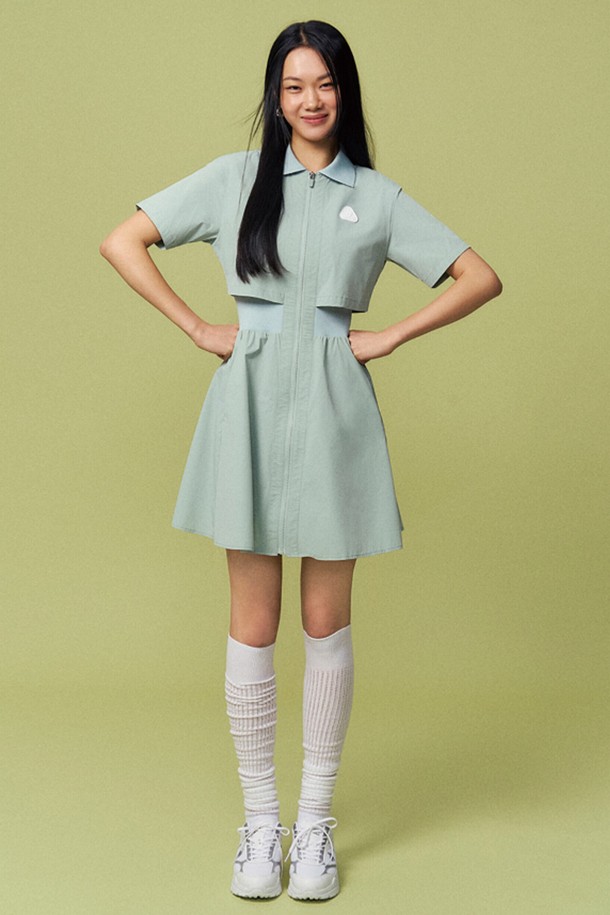 여성 풀집업 우븐 카라 원피스 민트 GR122LOP11