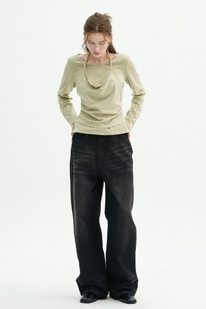 익스라 브러쉬 워싱 와이드 데님 팬츠