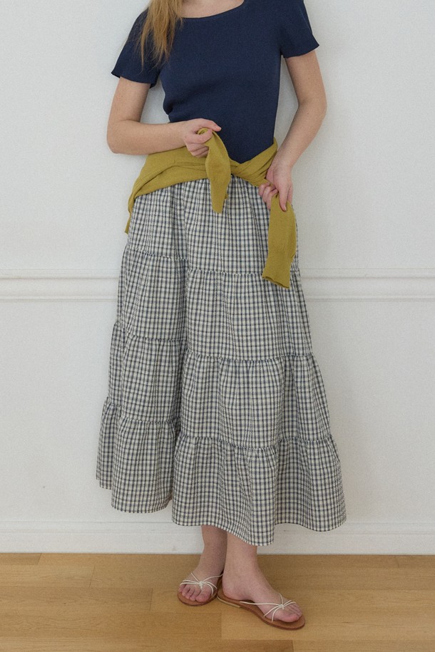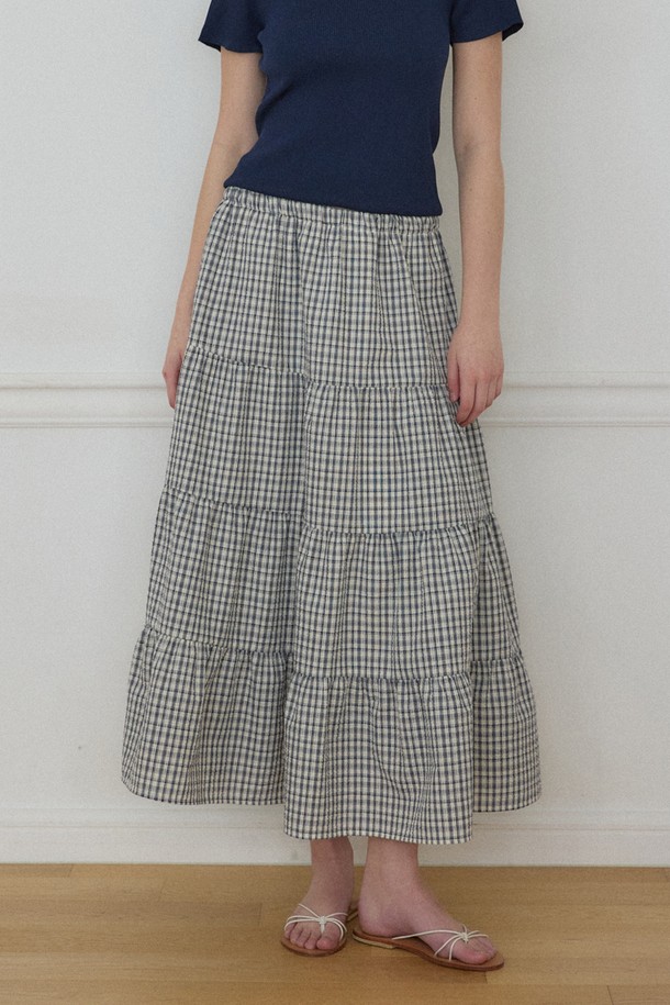 시어서커 캉캉 밴딩 스커트 - Navy Check