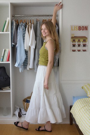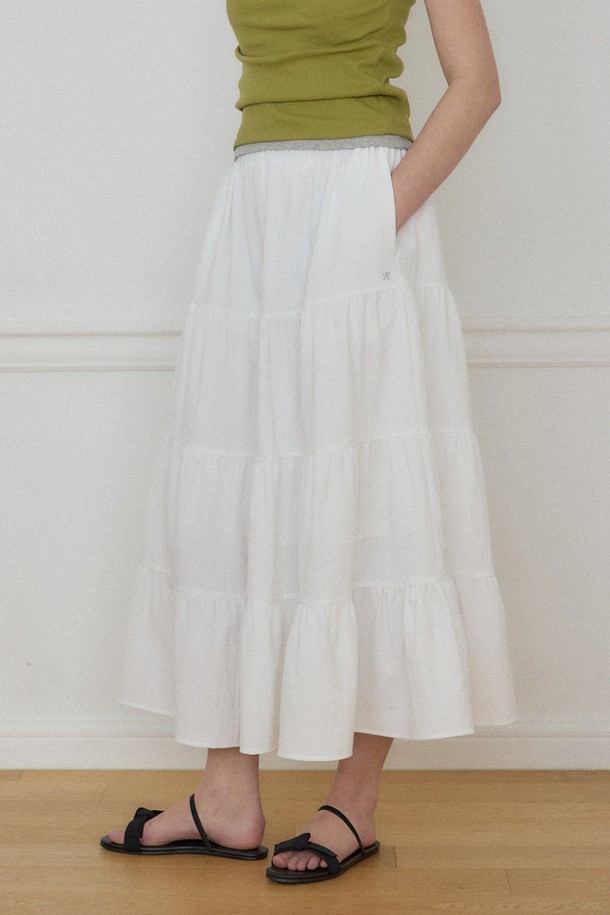 시어서커 캉캉 밴딩 스커트 - White