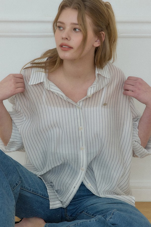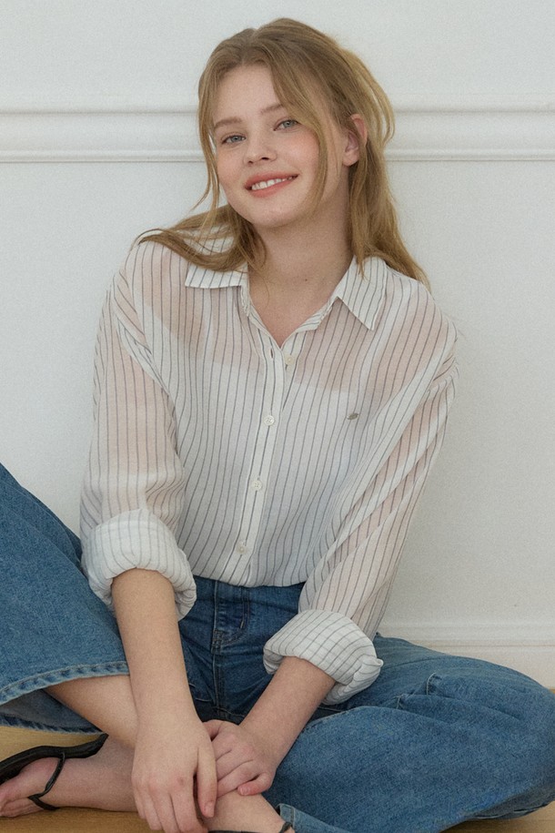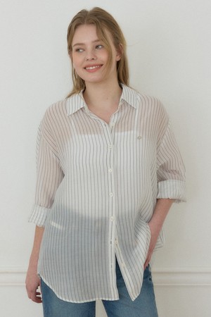 에어리 시어 스트라이프 셔츠 - Ivory